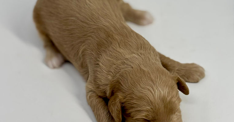 Mister squishy face is his nickname! I'm so in love with his big squish face. Red Collar has the prettiest apricot colored coat with white tip toes on his back legs. His coat is wavy and soft and going to be pretty when he gets older.