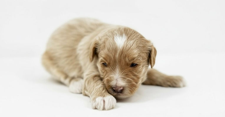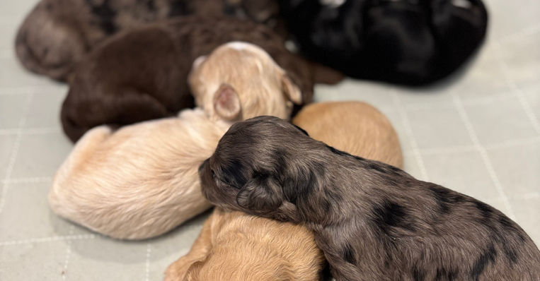 Our frosted girl! You ask what is frosted? Well frosted means that her coat has two diffent colors the secondary color will be at the tipslike a Frosting! It's always fun to have these coats with puppies they are more rare and just fun to watch. She is the smallest girl in the litter and has a wavy coat. Can't wait to watch her grow!